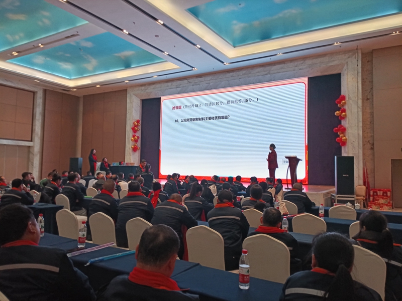 年會(huì)在活力四射的開(kāi)場(chǎng)舞《向前沖》中拉開(kāi)帷幕。總經(jīng)理發(fā)表重要講話,全面復(fù)盤2025年公司運(yùn)營(yíng)成果,并深入部署2026年戰(zhàn)略規(guī)劃,為公司發(fā)展指明方向。隨后的表彰環(huán)節(jié),對(duì)在核心指標(biāo)考核中表現(xiàn)突出的團(tuán)隊(duì)與個(gè)人進(jìn)行嘉獎(jiǎng),樹(shù)立榜樣力量。常務(wù)副總及7大部門負(fù)責(zé)人依次發(fā)言,分享經(jīng)驗(yàn)、交流思路,凝聚發(fā)展共識(shí)。感恩環(huán)節(jié)全員共唱《感恩的心》,傳遞溫暖與感動(dòng);知識(shí)競(jìng)賽環(huán)節(jié),各代表隊(duì)激烈角逐,展現(xiàn)員工扎實(shí)的專業(yè)素養(yǎng);制造中心副總發(fā)言后,知識(shí)競(jìng)賽頒獎(jiǎng)環(huán)節(jié)將現(xiàn)場(chǎng)氛圍推向高潮。原創(chuàng)舞臺(tái)劇《礪劍征程》以沉浸式表演,回顧公司發(fā)展歷程,引發(fā)全場(chǎng)共鳴。